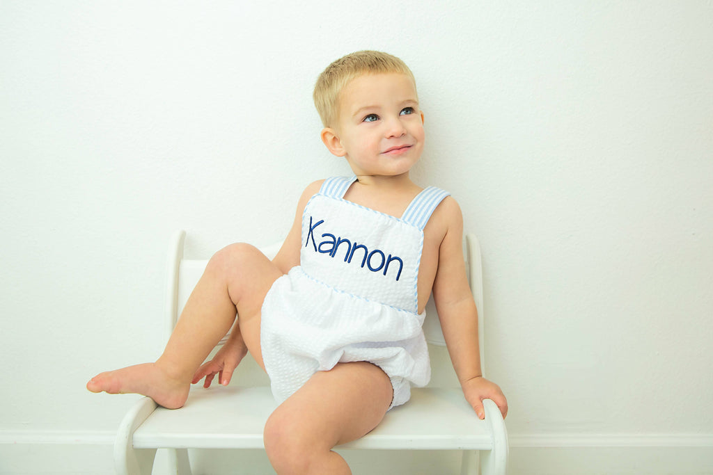 Unisex Seersucker Sun Bubble 100 percent cotton (check) Fully lined in 100 percent cotton Elastic in leg opening Snaps in crotch Our sun bubble available in several colors. It is fully lined, with snaps at the crotch and the shoulder straps have a series of button holes making the straps adjustable. You can also choose if you would like to cross the straps or wear them straight. The bubble has elastic in the leg openings. It would be super cute for Easter, 4th of July, and other summer gatherings.